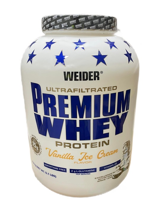 Představujeme Premium Whey, Vanilla Ice Cream – 2300g od značky Weider, vyrobený v Německu.Tento vysoce kvalitní syrovátkový proteinový prášek s příchutí vanilkové zmrzliny je ideálním doplňkem pro každého, kdo hledá podporu svého aktivního životního stylu a správnou výživu svalů.
